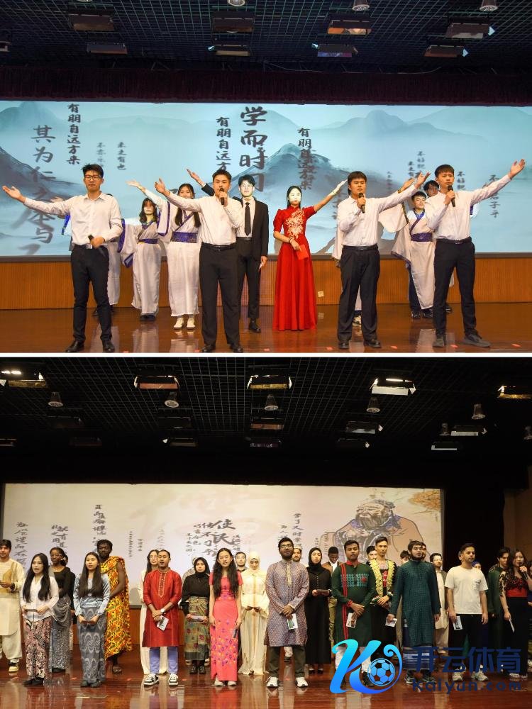 活动现场,中国石油大学(华东)文法学院、异邦语学院的大学生们以及国际解释学院的留学生们用多言语朗读《论语》经典篇章,通过丰富多元的艺术清楚格式,对经典进行了翻新演绎,将儒家深厚的文化底蕴融入当代舞台饰演。