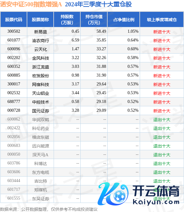 诺安中证500指数增强A为指数型-股票基金,凭据最新一期基金季报解析,该基金钞票设立:股票占净值比87.93%,无债券类钞票,现款占净值比8.51%。基金十大重仓股如下: