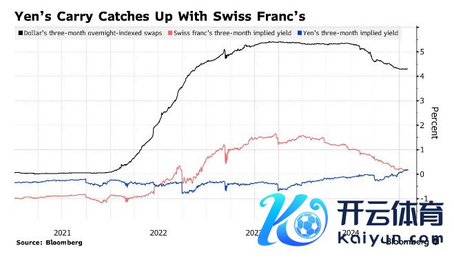 尽管好意思元对日元仍保握收益率上风,但日元四肢避险货币,正在对其他货币增值,甚而与瑞士法郎相忘形。日元的所谓“利差”(以三个月远期隐含收益率推测)在客岁12月下旬攀升至零以上,并自那时发轫次达到与瑞士法郎相称的水平,这是两年多来的初次。