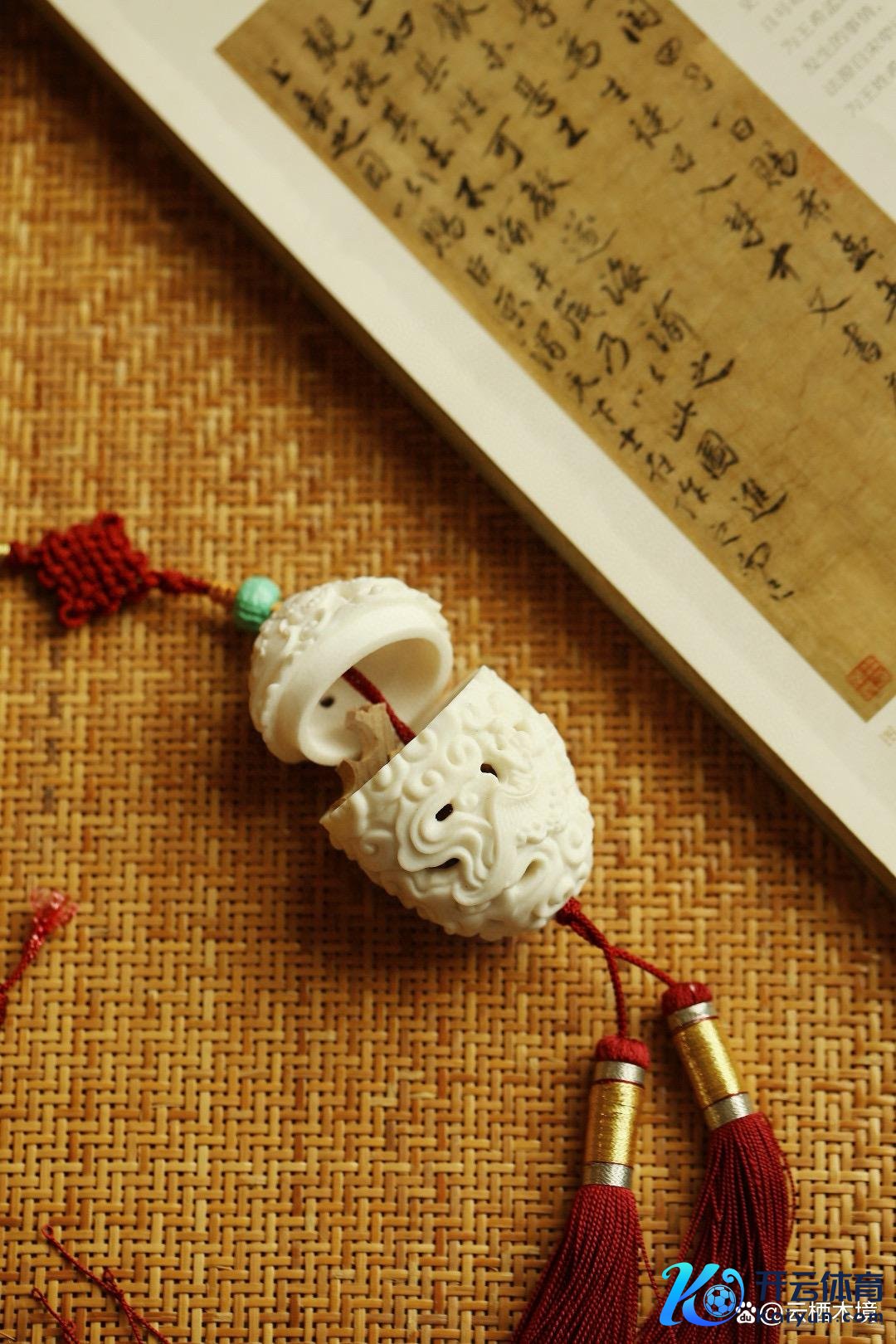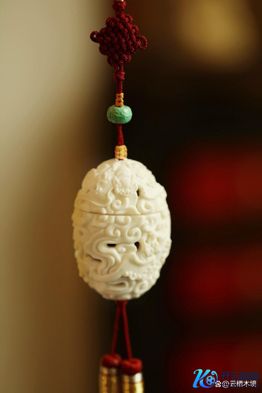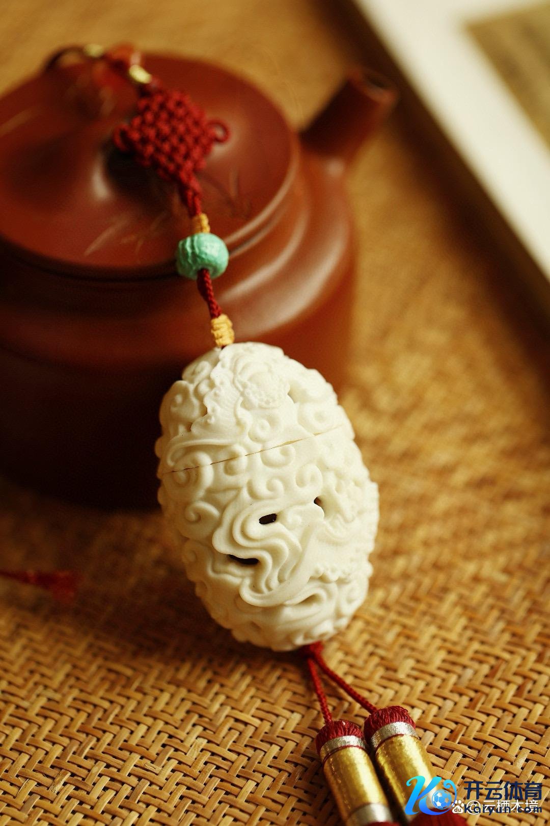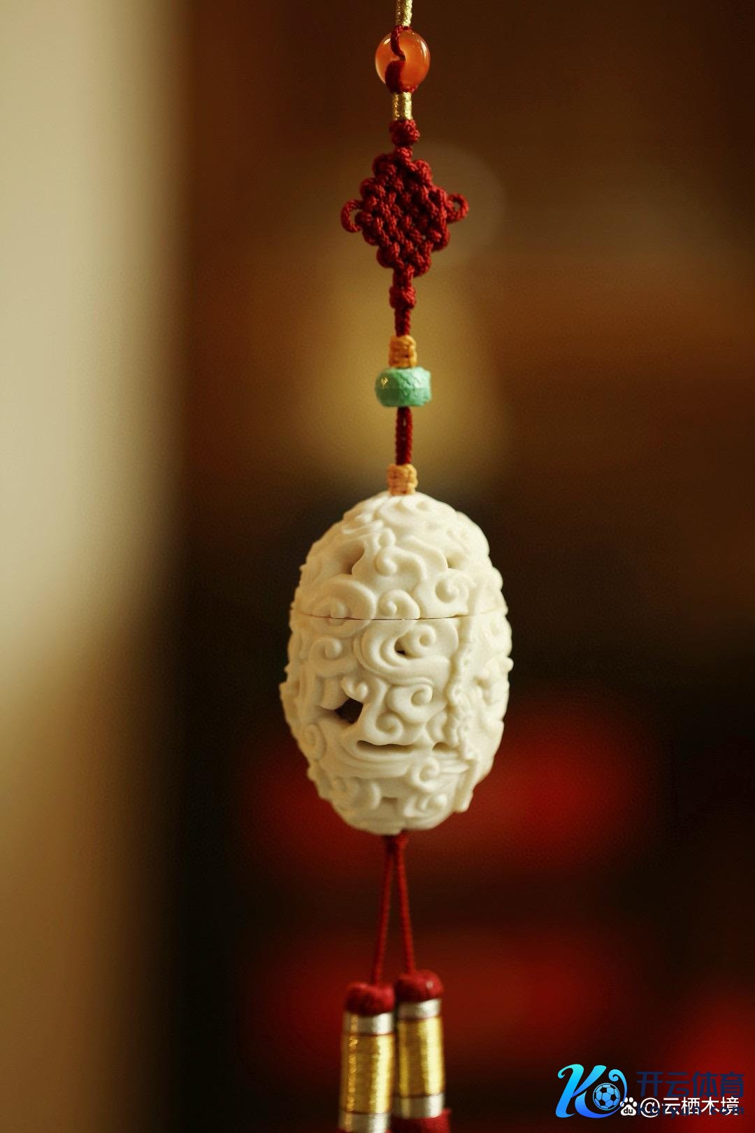 其透雕的祥云蝙蝠图案,展现了荣华工艺,蕴含昂首见福、福运绵长之意。